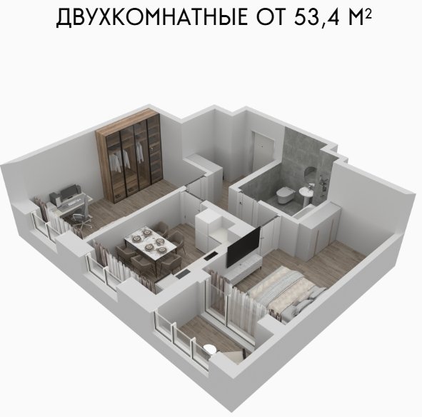 Площадь от 53.4 м2
