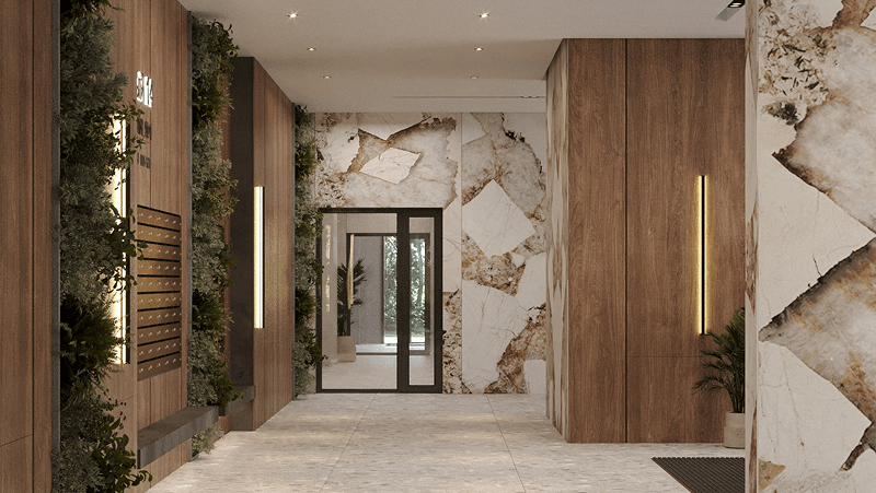 Внутри дома мы создаем среду бизнес-класса: стильные входные группы и холлы, разумное количество квартир на этаже и эргономичные планировки.