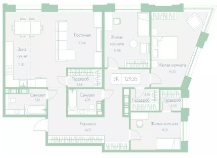 Сдача III квартал 2027 1, 2, 3 комнаты от 32.3 м2 от 0,9 до 10,0 млн. руб