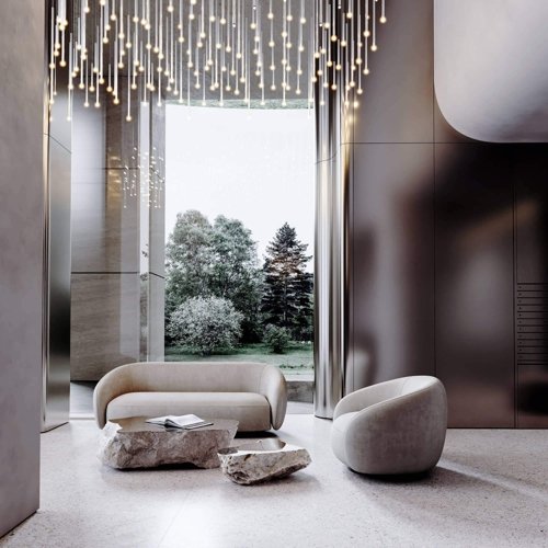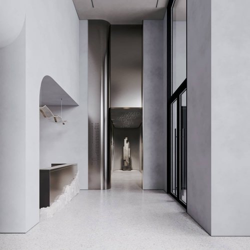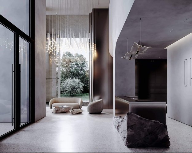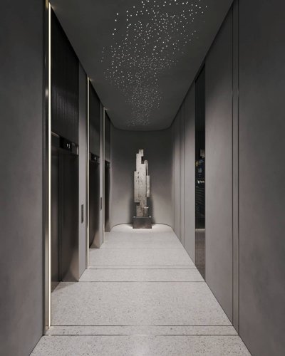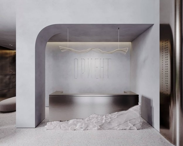 Главной особенностью вестибюля станет нордический, лаконичный дизайн помещений. Мы использовали натуральные материалы, нарочито грубые текстуры и спроектировали 7,5-метровые потолки, чтобы обеспечить эхо от шагов, как в горном ущелье.
