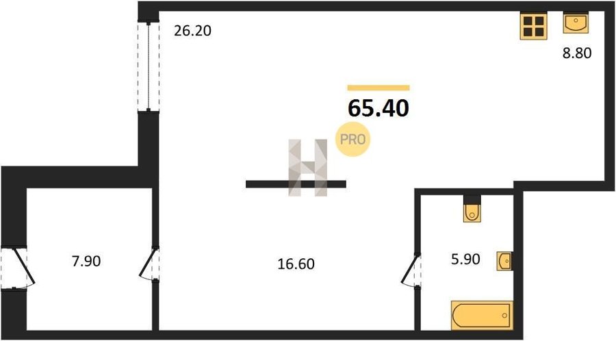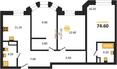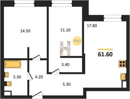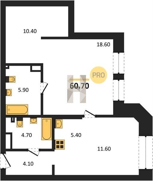 Площадь от 60.7 м2