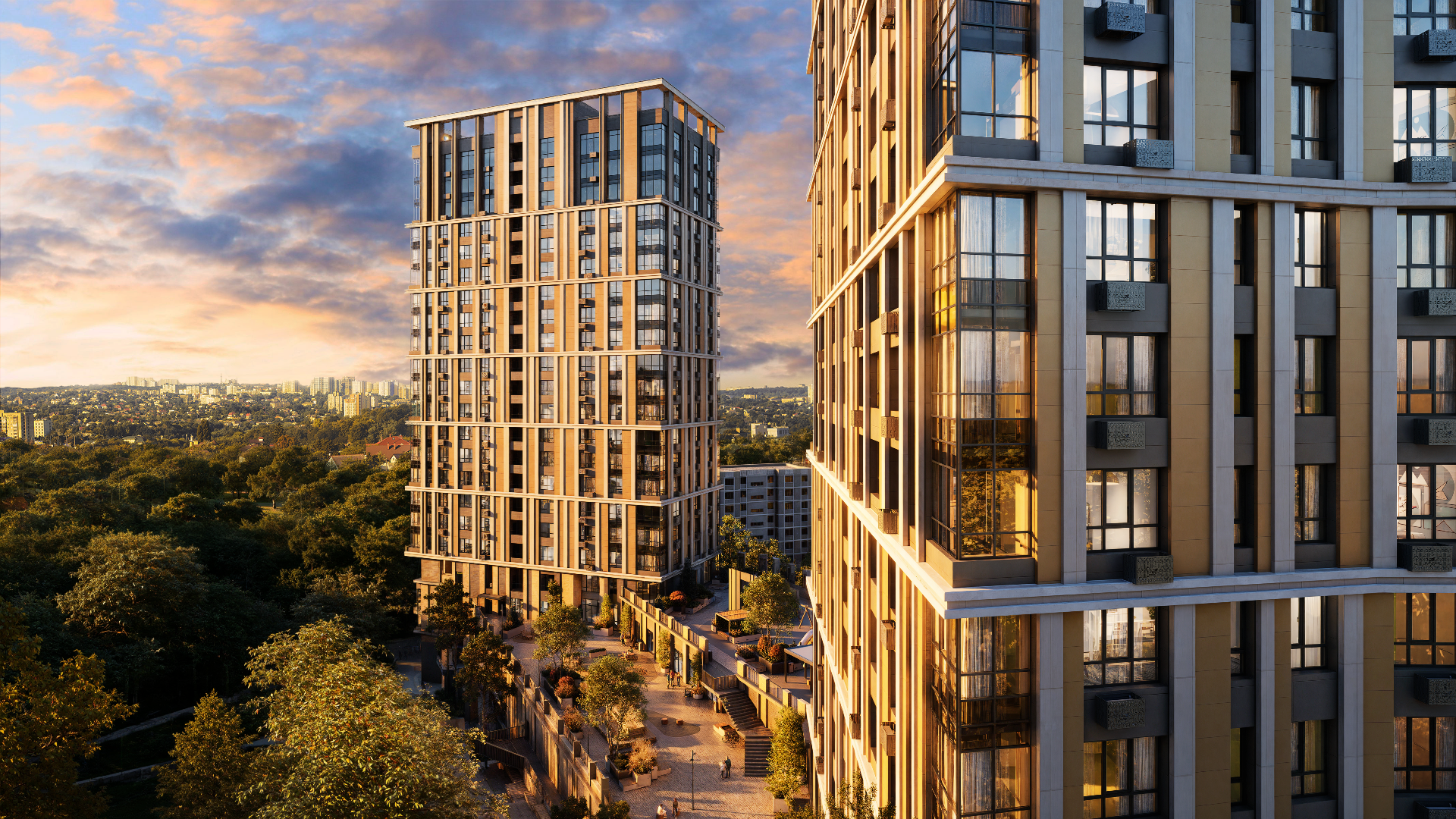 Облик комплекса создан мастерской Liphart Architects и унаследовал благородство петербургской традиции зодчества. Акцент на деталях, продуманный декор, панорамные окна с утонченными балконными решетками и мансардный этаж с террасами делают его неповторимым.